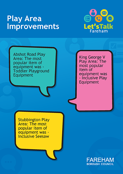 We are looking for feedback on improvement plans for three play areas across the Borough.
